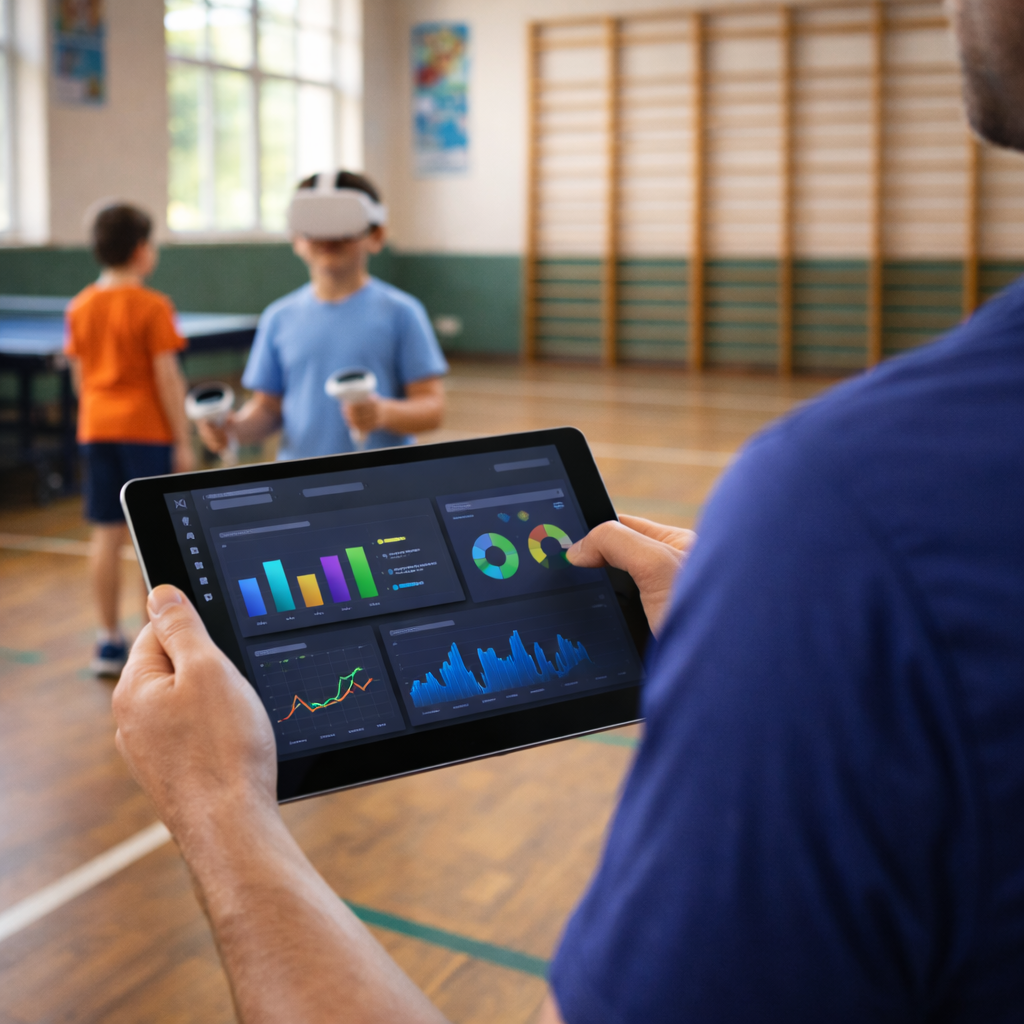 Pingpong Planet is designed for quick school deployment: launch it in the browser on Meta Quest headsets, guide kids through short, progressive VR missions led by the alien coach, then review participation and progress in the teacher dashboard to refine the next session.