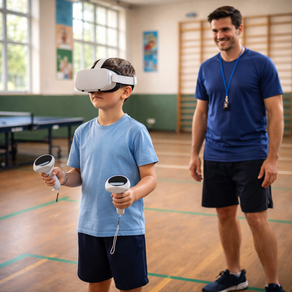Pingpong Planet is a WebXR-based VR exergame for children aged 5–10 that builds coordination, reflexes, balance and focus through playful, school-ready missions.